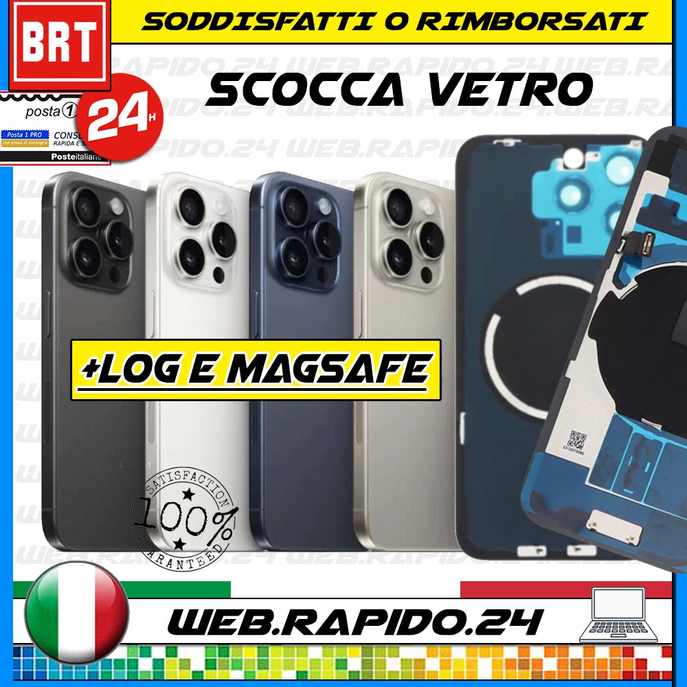 BACK COVER SCOCCA POSTERIORE COMPLETA VETRO+MAGSAFE+LENTI+FRAME x IPHONE 15 PRO