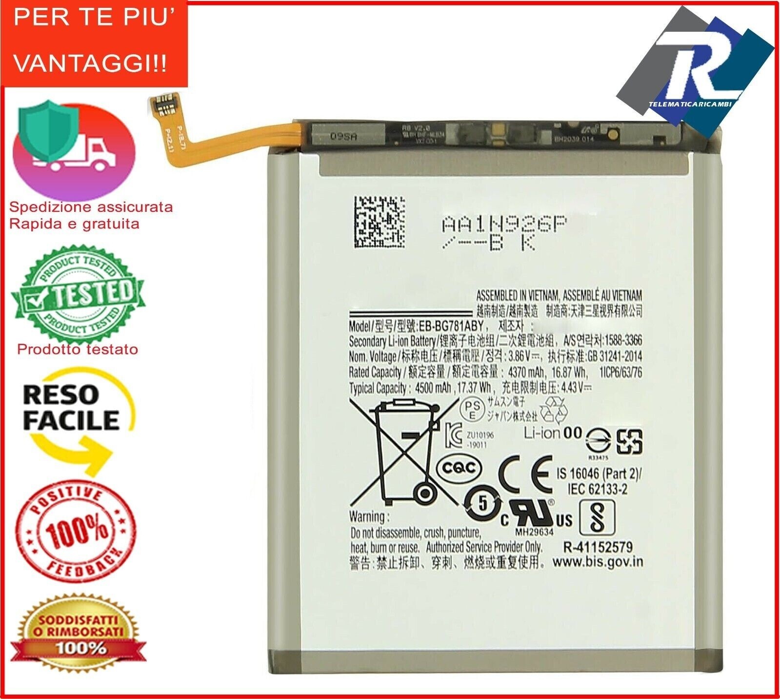 BATTERIA PER SAMSUNG GALAXY S20 FE SM-G780 SM-G781 EB-BG781ABY Sost.originale