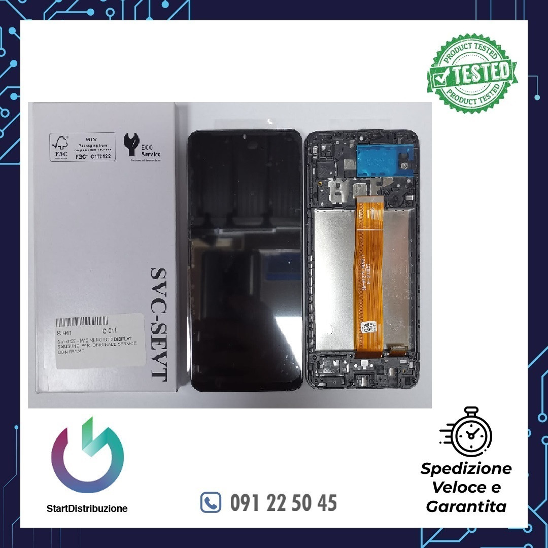 SAMSUNG LCD DISPLAY PARI ORIGINALE SERVICE CON FRAME NERO PER SAMSUNG SM-M127F M12 2021 .